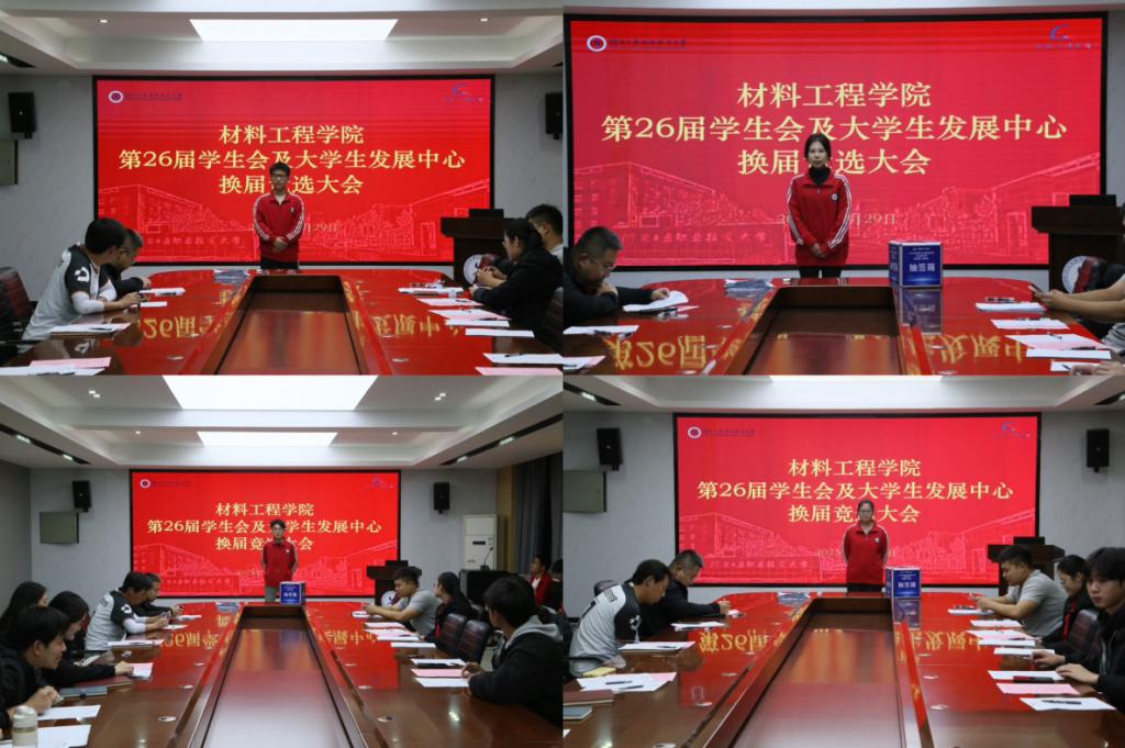 为强化我院学生干部队伍建设,为学生组织注入新动能,进而更高效地开展各项学生工作,10月29日,材料工程学院于会议室组织开展了第二十六届学生干部换届选举大会。